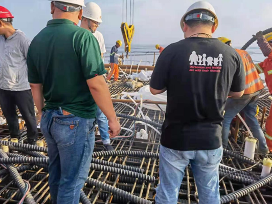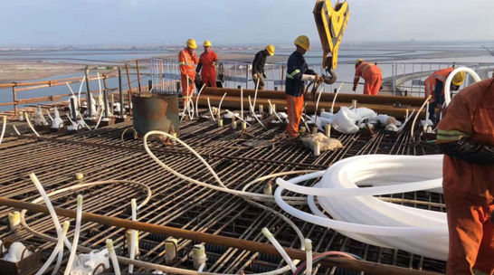 在观摩现场,首先由监理单位总监理工程师详细讲解了在建大桥的基本功能情况和设计理念,阐述了项目存在的难点和重点,介绍了一批新材料、新工艺、新设备、新技术在漳卫新河特大桥设计、施工过程中的应用。随后,全体参观学习人员在施工现场进行实地观摩。工区观摩学习人员前往漳卫新河特大桥的驻地,一方面听取了沿海高速漳卫新河特大桥项目部的详细介绍,另一方面与项目部工作人员就工程项目的组织实施重点难点和技术工艺措施等进行沟通交流。