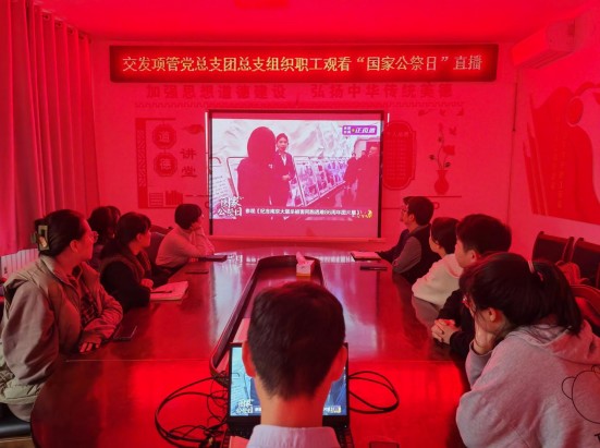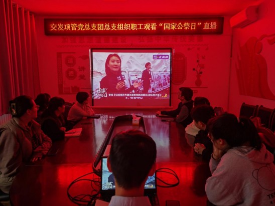 今日,交发项管党总支、团总支组织机关在岗职工集体观看“国家公祭日”直播,牢记侵略者罄竹难书的罪行,为南京大屠杀遇难同胞哀悼,传递历史真相,播撒富强和平之种。