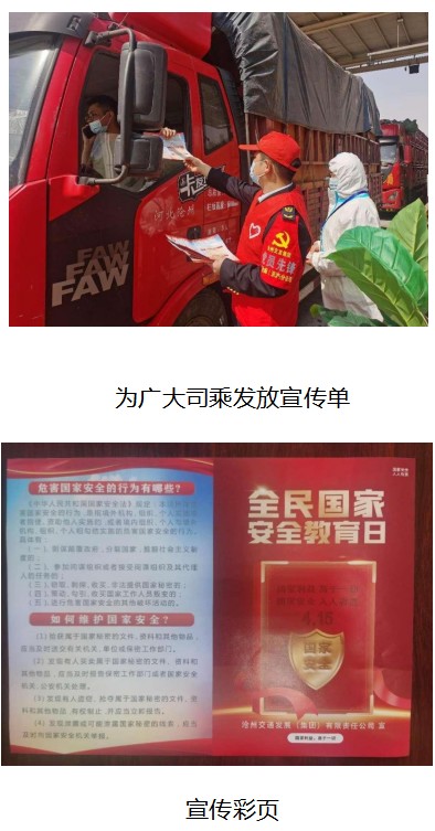 多措并举,大力做好社会宣传动员。利用微信、抖音、快手、微博、公众号、路段内可变情报板、站内LED显示屏、发放宣传页、悬挂条幅等多途径宣传方式,对“全民国家安全教育日”活动进行重点宣传,唱响“忠诚履职,勇于担当”的时代旋律,在全社会营造维护国家安全的浓厚法治氛围。