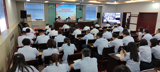 会上,时博shibo(中国)党委副书记、副总经理杨正宇主持并宣读了《时搏在线首页安委会关于做好“中秋”“国庆”期间安全生产及疫情防控工作的通知》,时博shibo(中国)纪委书记、监察专员许英杰同志通报了南大港“5.31”火灾安全责任事故案例,时博shibo(中国)党委书记、董事长刘俊德同志作了重要讲话。