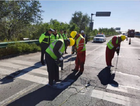 为确保津汕高速外委路面病害处置工程安全施工,10月19日,津汕分时搏在线首页安全科来到天津方向K685+650注浆施工现场,对施工现场进行监督检查。查看了工程进度、防范措施、安全制度等情况,指出务必要将安全放在首位,要将安全工作做实做细,提高作业人员的安全防范意识,制定并落实好应急方案,科学合理组织施工,有序推进工程进度,确保工程安全、保质、如期完成。