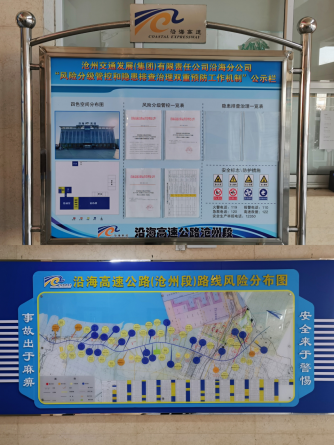 为全面建立制度健全、职责明晰、运行规范、管控有效的“双控”机制,沿海分时搏在线首页坚持关口前移、源头管控、预防为主、综合治理的原则,建立健全了安全风险分级管控和隐患排查治理工作的相关制度和标准规范,完善落实了安全风险的辨识、评估、分级、管控等各环节工作责任及管理措施,于12月底圆满完成了“双控”机制建设工作。一是成立领导小组。成立了以沿海分时搏在线首页经理为组长,机关各部门、各基层单位负责人组成的“双控”机制建设工作领导小组,并积极组织收费、养护、机电、财务、稽查、安全等各部门及一线职工全员参与建设工作,形成主要领导全面负责、分管负责人具体落实、相关人员齐抓共管、全员共同参与的良好局面。二是建立健全“双控”工作制度。沿海分时搏在线首页编制了《沿海分时搏在线首页“双控”机制建设指导手册》,建立健全了《安全生产风险管控与隐患排查整治管理制度》《安全生产风险动态监控及预警制度》《风险辨识公示制度》《安全生产考核奖惩制度》《安全教育培训制度》及《全员安全生产责任制制度》六项“双控”工作管理制度,明确了全员安全生产工作职责,确定了安全风险和隐患的类别、评估分级方法和依据,规范了双控工作的开展与运行机制,为沿海分时搏在线首页完善双控工作、形成长效预防机制指明了方向。三是开展全面风险辨识。结合本单位实际情况,对生产过程中人、物、环境、管理等四方面因素开展全面安全风险辨识和隐患排查,建立了沿海分时搏在线首页岗位风险辨识表、风险管控信息台账、事故隐患排查清单、隐患排查治理台账。采用DLEC法进行评估打分,确定低风险(蓝色)690项,一般风险(黄色)125项,较大风险(橙色)10项,重大风险(红色)0项,并对分级后的安全风险制定相应的防控措施。四是编制风险分布图及风险告知卡。按照风险等级,绘制了四色风险分布图及岗位风险告知卡,标明主要安全风险及管控措施、应急措施、责任人及联系方式等,共制作风险分布图7幅,上墙风险告知卡143块,车内风险告知卡21块。