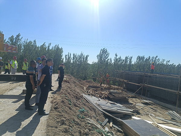 8月22日,市交通局监督处赵春涛主任、公路事业发展中心苏西镇科长对石黄南互通桥梁路基工程质量进行专项检查。城乡时搏在线首页项目相关人员陪同检查。