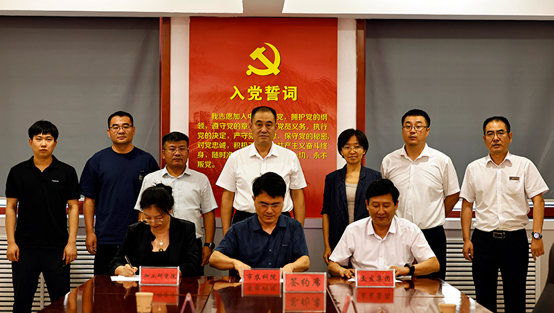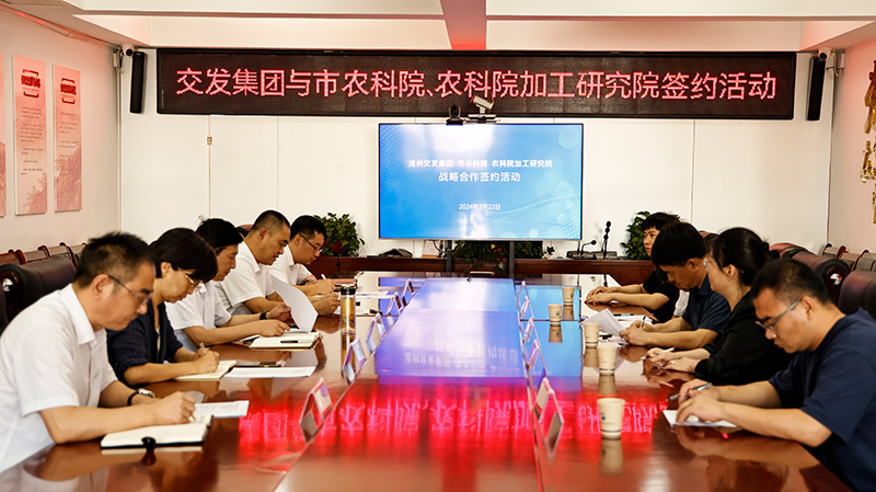 7月22日,时搏在线首页、沧州市农林科学院、中国农业科学院农产品加工与营养健康研究院(沧州)全面战略合作协议签约活动在交发时博shibo(中国)举行。交发时博shibo(中国)党委书记、董事长刘俊德,沧州市农林科学院党委书记哈增瑞,农科院加工研究院常务副院长董维出席签约活动。
