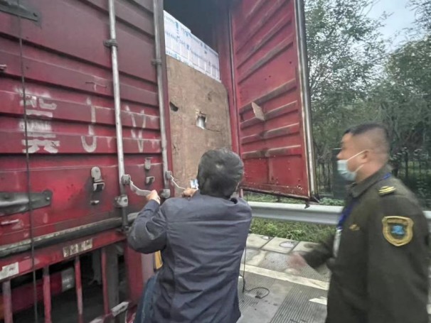 二、规范查验流程,重点查验可疑车辆。按照规范流程进行查验,坚持“多人、多点、全方位”查验。对于封闭式货车、有篷布遮盖的车辆要加大查验力度,坚持“一看、二验、三拍、四核”的工作制度,精准测算符合绿通免费车辆的装载率及货物。对于可疑车辆采取整车验货的方式,有针对性地从严查验,严防假绿逃费行为发生。对于不配合的司乘人员以及不符合要求的车辆,耐心给驾驶员讲解政策法规,争取司乘人员的支持和配合,同时,严格按章收费,坚决查处各类混装、夹装等行为。