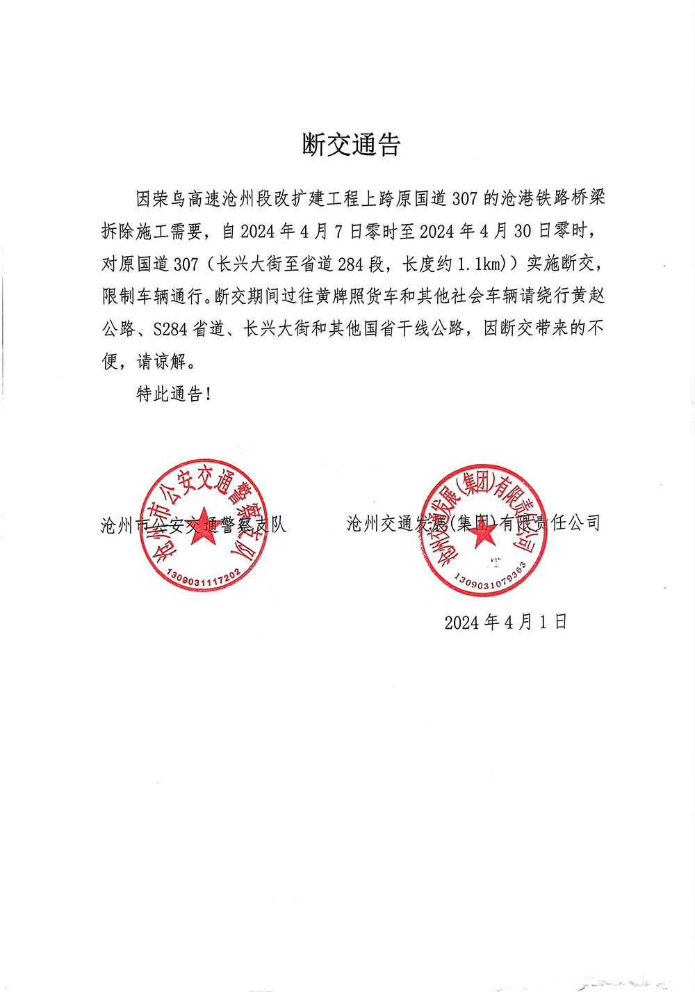 断交通告
