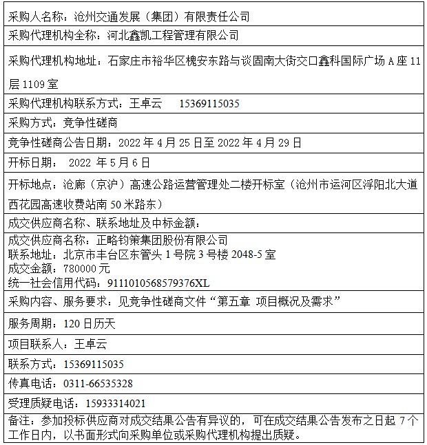 沧州交通发展(时博shibo(中国))有限时搏在线首页企业内部控制及风险控制咨询成交结果公告