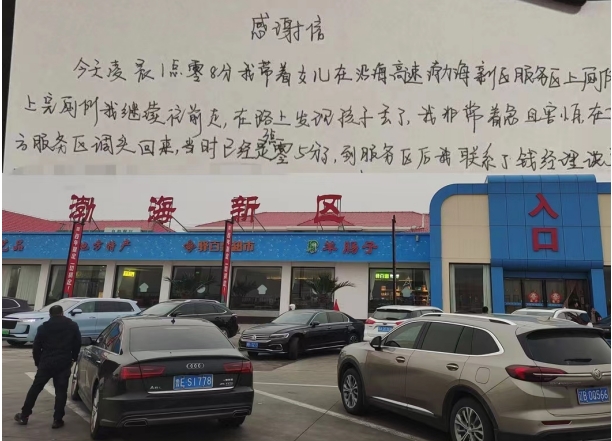 在沿海高速渤海新区服务区,一次温馨的援助行动正在上演。2月19日凌晨一点多,一个女孩神情慌张,独自在服务区大厅内来回走动,引起了值班人员的注意。经询问了解,女孩与父亲在洗手间走散,服务区的工作人员迅速行动起来,上报监管办值班人员和服务区经理,与此同时,耐心地询问孩子的姓名、家长信息,试图从女孩的只言片语中找到线索,确保能尽快找到孩子的家长。在这个过程中,工作人员不仅提供了物质上的帮助,更温柔地安抚她的情绪,为女孩提供了安全感。根据女孩提供的信息,工作人员很快联系上其父亲王先生(化名)。王先生一家来自黑龙江省大庆市,接到服务区工作人员电话时并没有发现女儿没在车上,已经重新驶入高速公路,凌晨三点,在下一个服务区掉头返回渤海新区服务区。看到由工作人员照顾的女儿情绪稳定毫发无伤,王先生激动地热泪盈眶,对工作人员连连道谢,表达着感激之情。在留下一封感谢信后,王先生带着女儿愉快的再次踏上旅途。