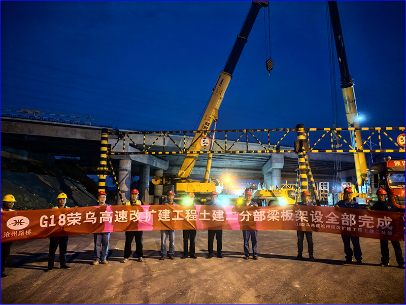2024年9月26日,随着跨沧港铁路桥梁最后一片箱梁吊装完成,G18荣乌高速改扩建工程土建二分部梁板架设工作全部完成!