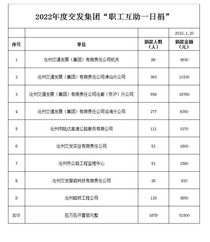 2022年交发时博shibo(中国)职工互助一日捐公示表